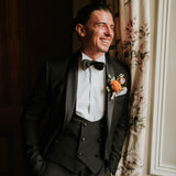 Our Slim-Fit Tuxedos, offer a modern take on a classic style, combining craftsmanship and quality fabrics for comfort and a sharp, defined look.